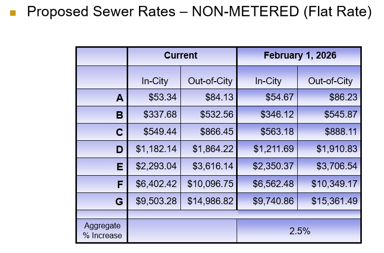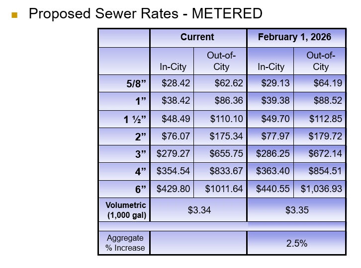 The Board of Aldermen will consider the First Readings of the applicable bills following this Public Hearing. If approved, the new rates would take effect on March 1, 2026.